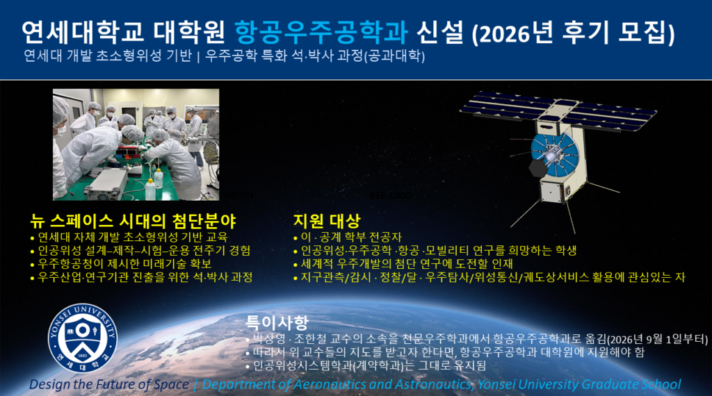 - 연세대학교 대학원 항공우주공학과 신설 안내(2026년 후기 모집)